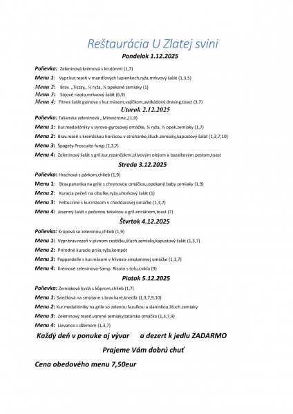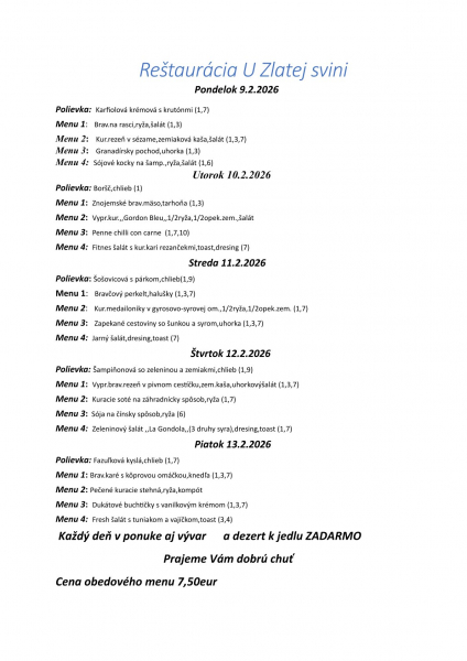 Cena obedového menu 7,50eur