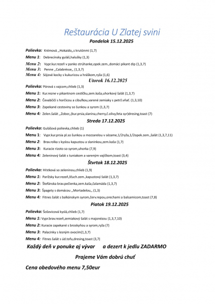 Menu 2: Štefánska brav.pečienka,zem.kaša,čalamáda (1,3,7)